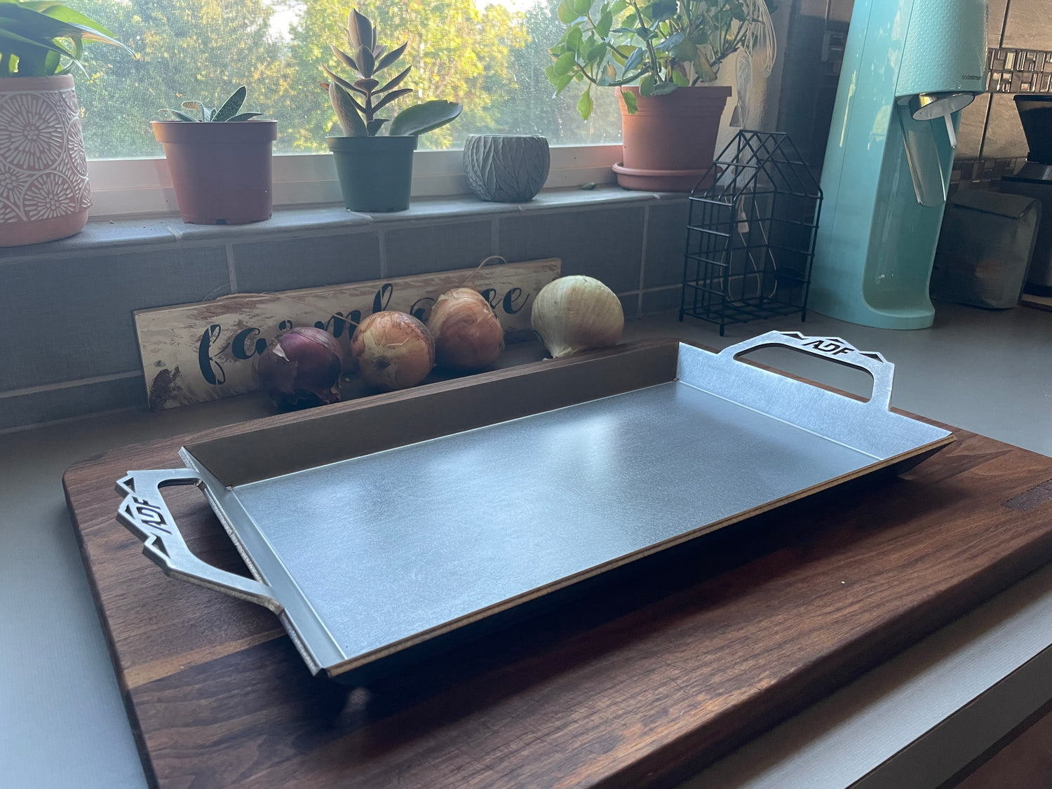 Manufactured from 3/16” steel and CNC formed! This durable griddle will last ages! Pan base is 8-3/4” X 15”. Recommend regular seasoning of pan with oil to protect the pan from corrosion.