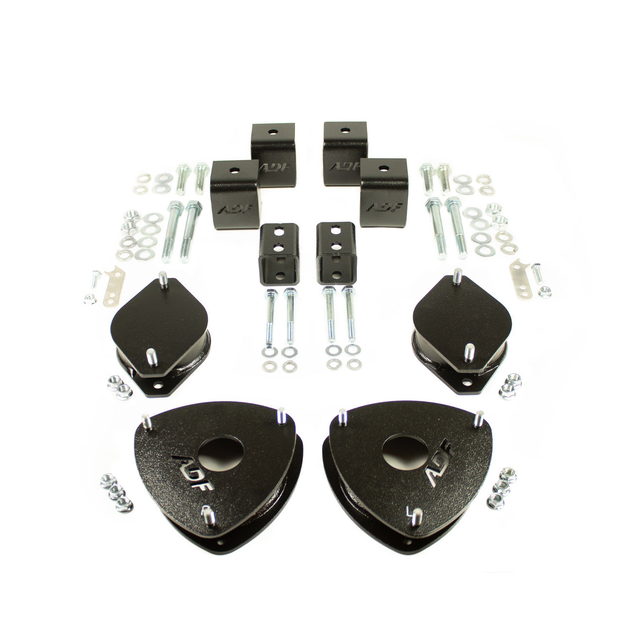 Camber and improved caster offsets are incorporated into the steel spacers to maintain factory alignment specifications, ensuring optimal handling and performance. While the kit includes alignment features, we recommend scheduling a professional alignment after installation to ensure precise adjustment and alignment.
