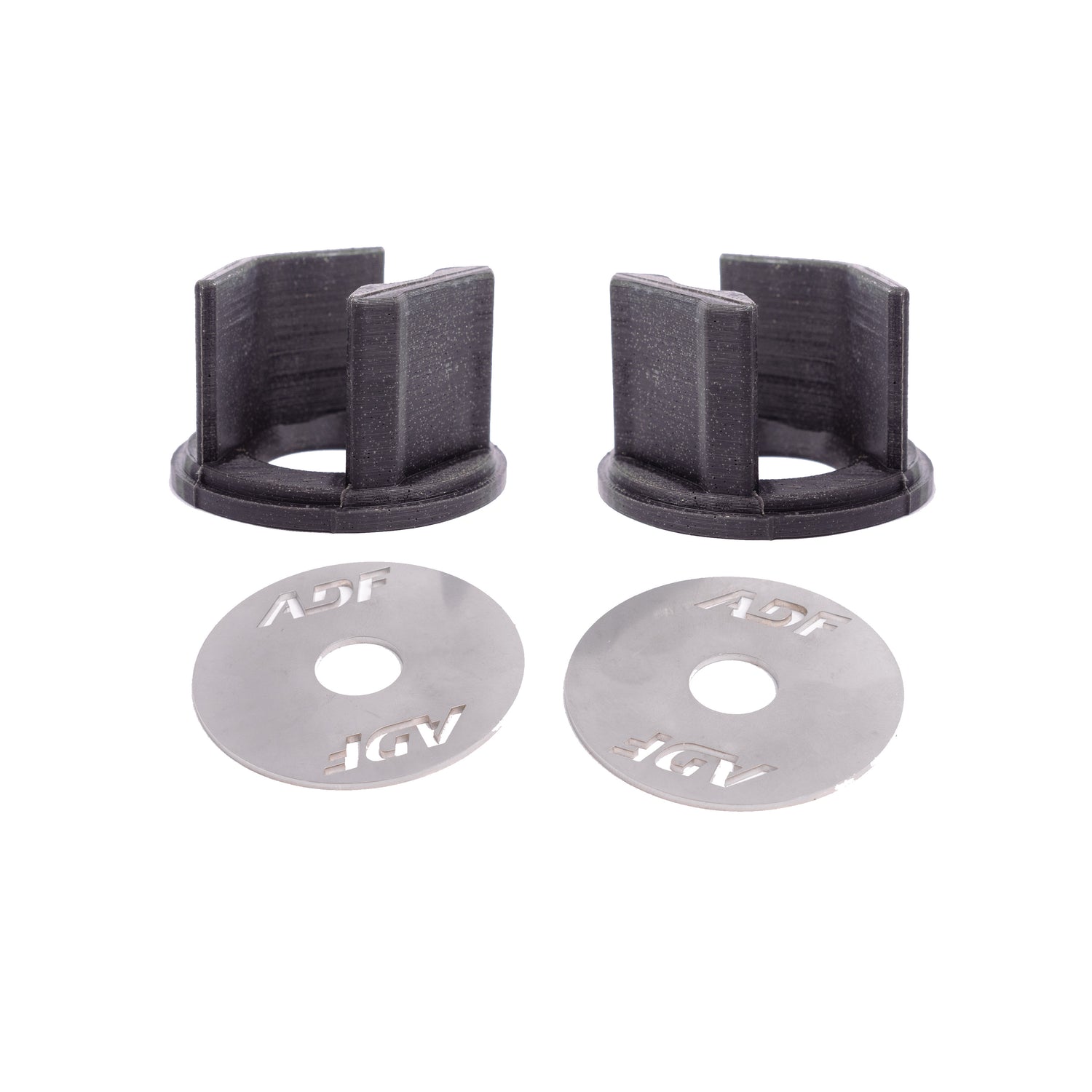ADF Lock Differential Lock Out Bushings reduce movement in the factory differential bushings by filling the void in the bushing with high quality 85a urethane rubber inserts. Manufactured in house in the USA, with the highest quality in mind. Custom ADF washers are included with this kit which prevents the insert from walking its way out of the bushing. These bushings also help torsion rotation in the ratcheting process with the Torqe Master Lockers, reducing noise and aiding a smoother ratcheting during cornering. This bushing may increase NVH in the vehicle.