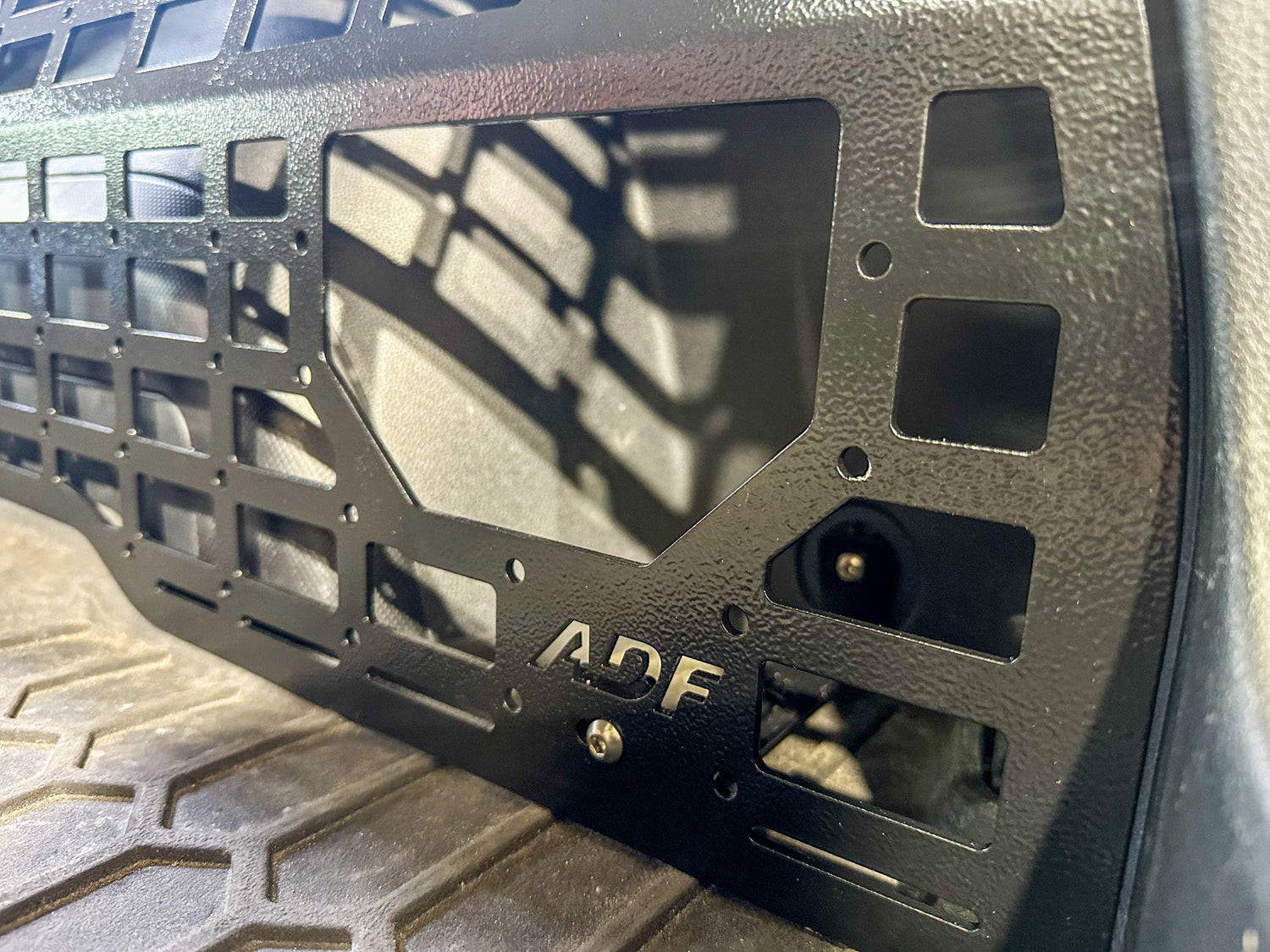Please note: We recommend not exceeding 10 lbs per rack. The package does not include a fire extinguisher or Molle bag. One Molle rack will need to be removed in order to access the spare tire. Quick Spin T bolts are in place for a fast and easy removal.