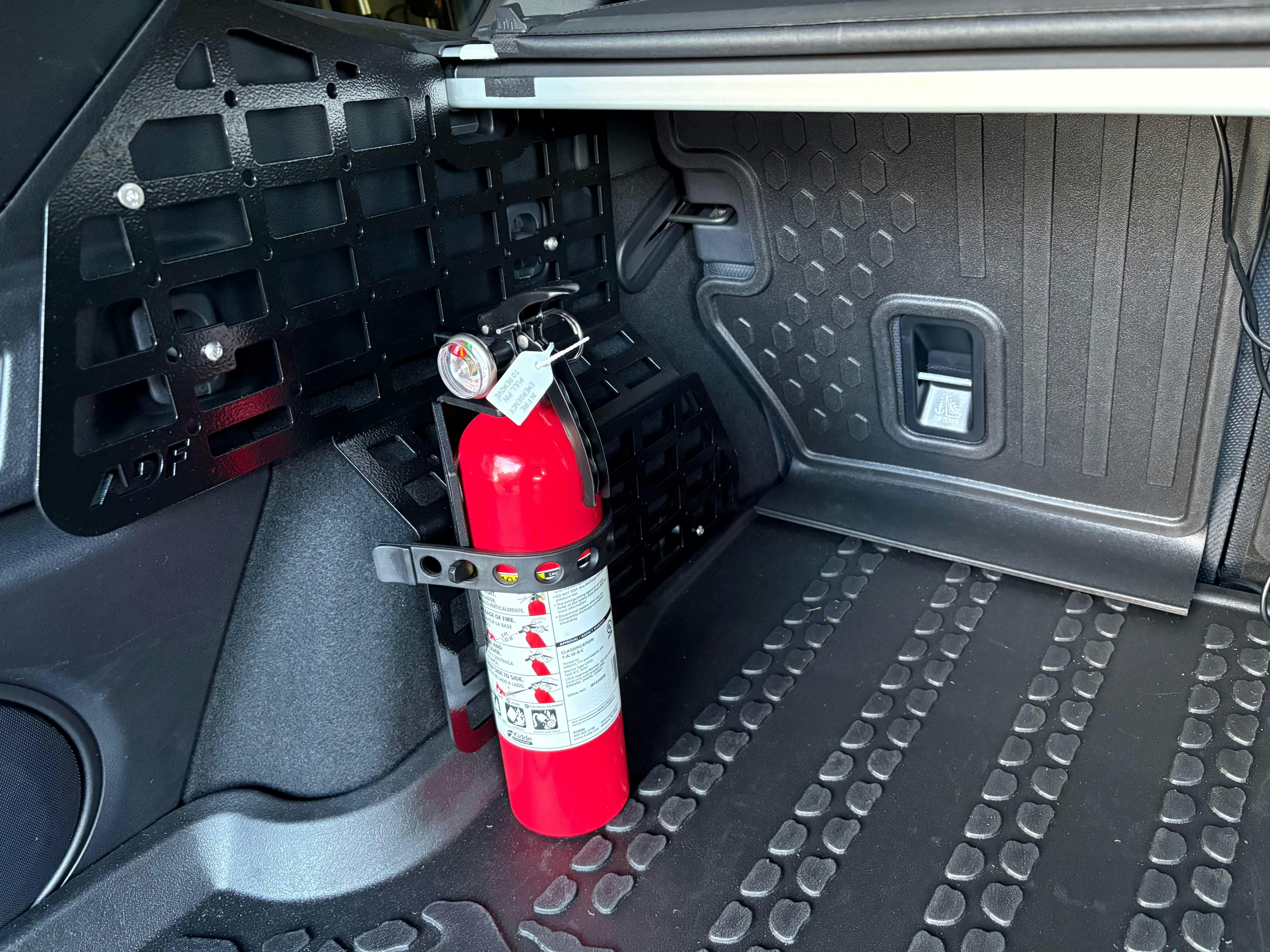 Be prepared for anything! Fire extinguishers can be hard to place in these vehicles, they are awkwardly shaped and most of the time end of rolling around on the back floor board. We are offering a mounting bracket to help this! ADF Fire Extinguisher Mount.